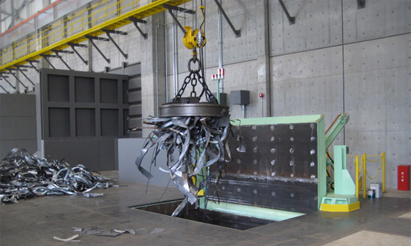 新断材を炉前サイズ、廃自動車をAプレス材に圧縮成形致します。