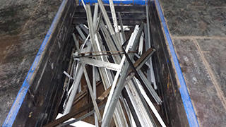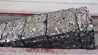 新断材及びアルミサッシを炉前サイズに圧縮成形致します。ご希望に合わせて、圧縮力は高圧・低圧の切替ることが可能です。