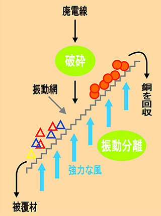 廃電線を銅と被覆材に分離、効率よく銅を回収!