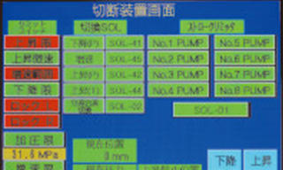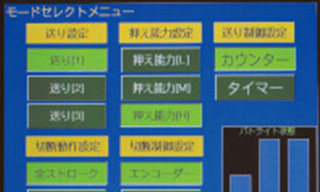 制御操作は、グラフィックオペレーションターミナル(GOT)を採用。機械の稼動状況や異常履歴が表示され、メンテナンス費用削減に効果を発揮します。