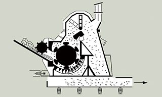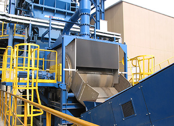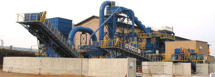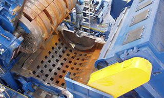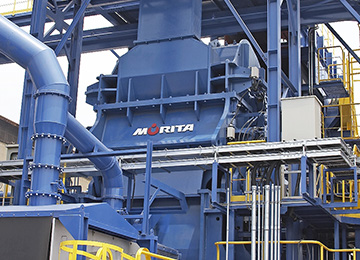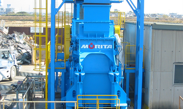 廃車・廃家電製品・産業廃棄物などの大型スクラップを粉砕する高性能破砕機です。投入されたスクラップは「プレシュレッダ」で粗破砕され、粗破砕されたスクラップは順次横型シュレッダに投入され、粒状に細かく粉砕されます。