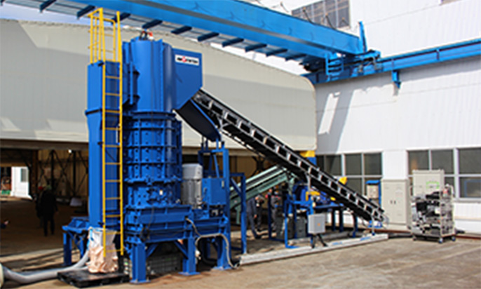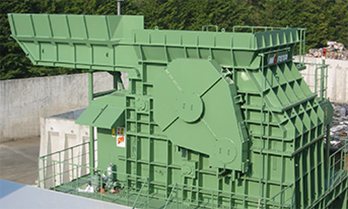 横型シュレッダを効率よく安全に稼働させるため、各種スクラップを粗破砕するモリタ環境テックの前処理破砕機