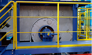 マグネットドラムで、強力な磁石により破砕した材料から、高純度の鉄スクラップを回収することができます。