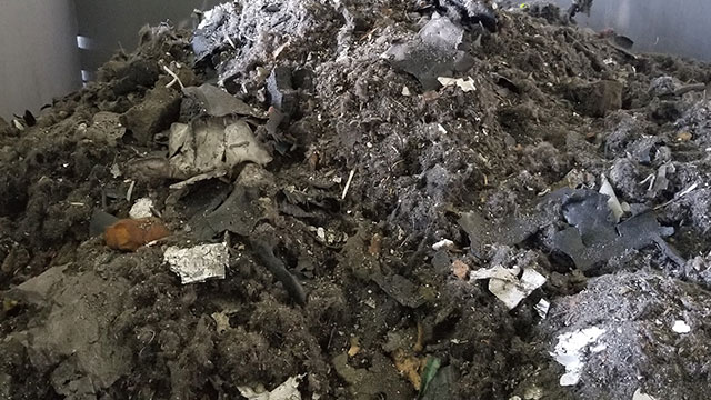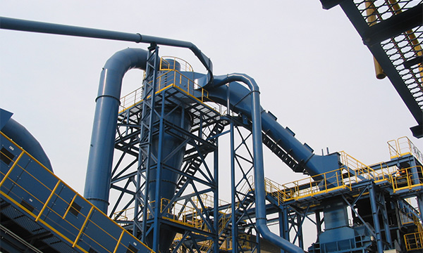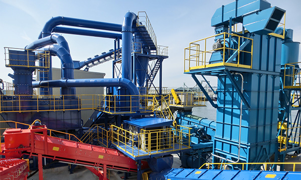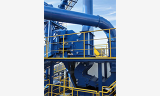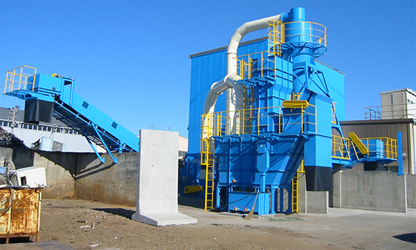 シュレッダ本体・風力選別機から運ばれてきた、軽量物(ウレタン・布・粉じん)をサイクロンで粉じんとダストに選別。さらに粉じんをスクラバに通すことにより効率よく細かいダストを回収し、排気することができます。環境負荷低減につながります。